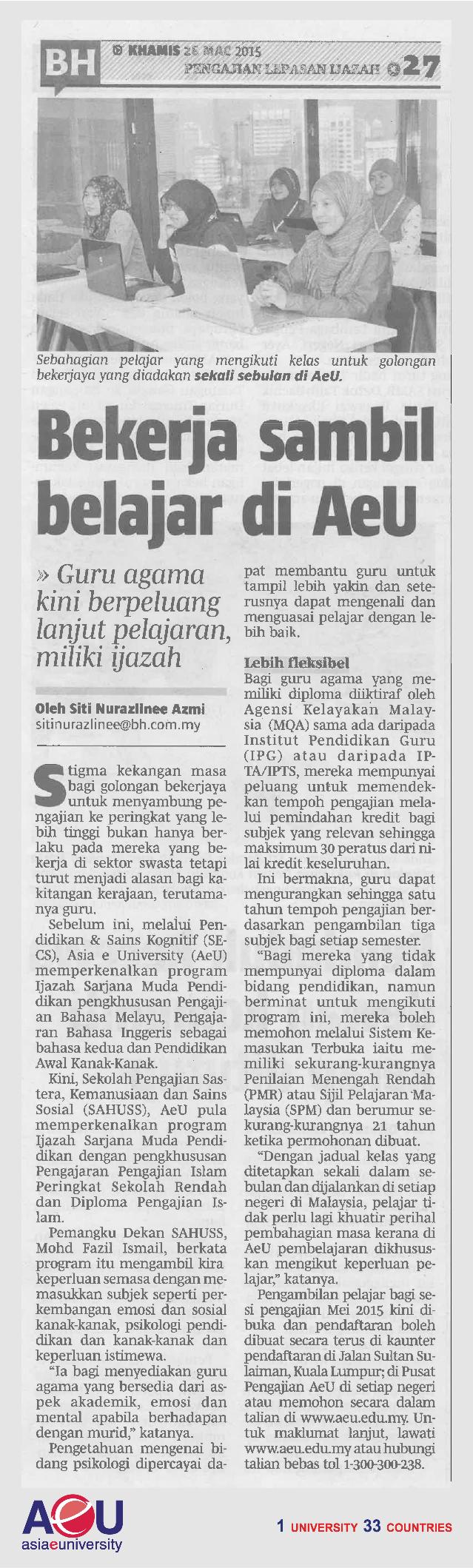 Bekerja sambil belajar di AeU